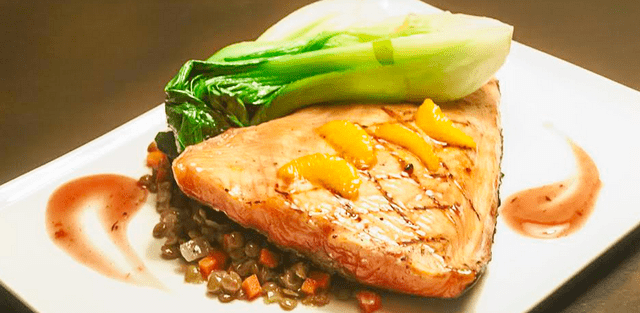 7) Optional – Cut off the peel to the oranges and slice out the segments. Dip in brown sugar and broil for approximately 2 minutes, or until the sugar has caramelized. Top the salmon with the segments for a bonus.