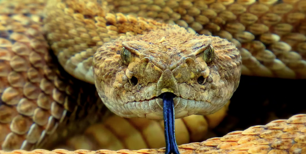 - ID Tip: A heavy body, a broad triangular head, and a distinct rattle at the end of a velvet-black tail.